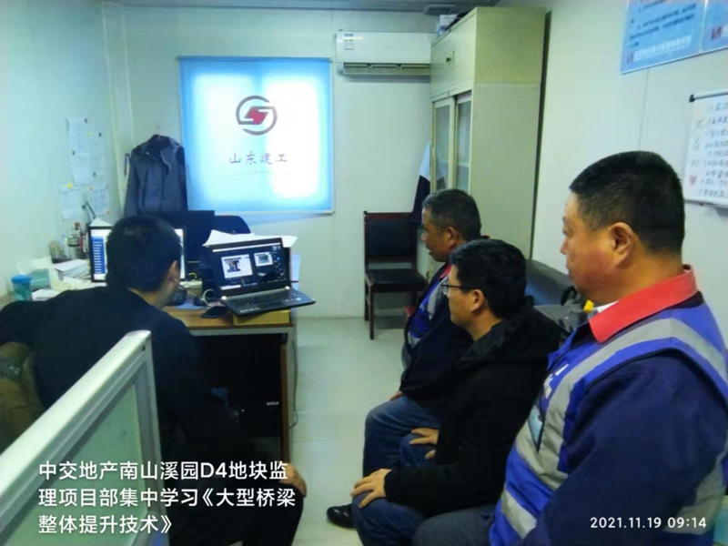 本次恒信監(jiān)理大講堂由公司總工程師高厚儒帶隊,采用線下與線上相結(jié)合的方式,公司年輕骨干人員現(xiàn)場參會,公司其他監(jiān)理人員通過線上參加會議,項目聘請了上海天演建筑物移位工程股份有限公司技術(shù)總工張昊進行授課,會議上主要講解了本工程頂升概況、重點難點、施工中應注意事項、如何保證頂升中施工安全、已完成頂升的橋梁工程業(yè)績等內(nèi)容。通過本次學習讓我們監(jiān)理人員了解橋梁頂升技術(shù)參數(shù)要求,施工中應注意控制的重要節(jié)點及關鍵工序的控制要點,既拓寬了監(jiān)理人員的橋梁頂升技術(shù)知識,也為后期現(xiàn)場橋梁頂升監(jiān)理工作做更好的鋪墊。
